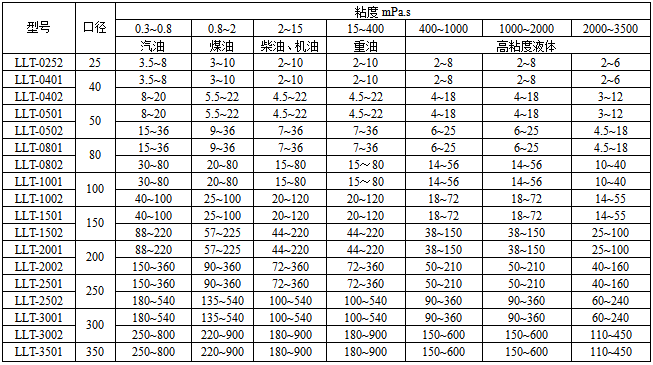 五、螺旋雙轉(zhuǎn)子流量計選型型譜
