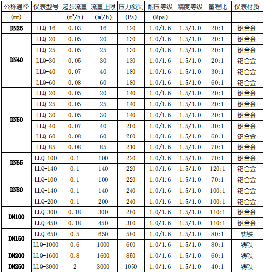 3、始動(dòng)流量小,量程比寬,適合于計(jì)量符合變動(dòng)大的氣體流量。