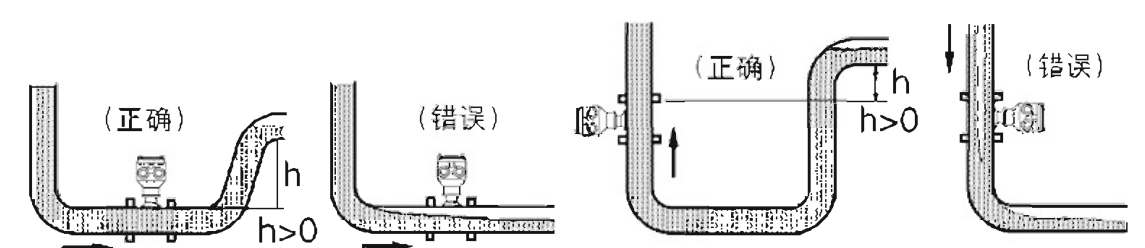 保證管路一直充溢液體至關(guān)重要,否則流量顯現(xiàn)會遭到影響,而且還會呈現(xiàn)丈量錯誤,管路構(gòu)造的設(shè)計必需要保證測流管一直充溢流體。當(dāng)流體有分流貨含有固體顆粒沉淀物時,倡議運用垂直裝置。但采用垂直裝置時,要遵照流體從下到上的走向,以保證管路充溢流體。