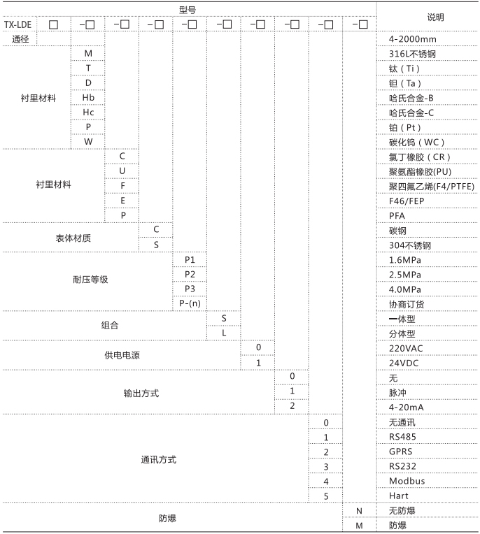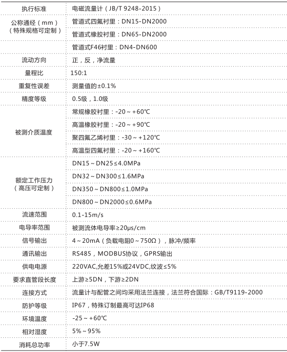 三、防腐型電磁流量計(jì)技術(shù)參數(shù)