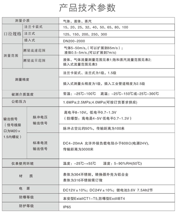 測量介質(zhì):液體、一般氣體、天然氣、蒸汽(飽和蒸汽和過熱蒸汽);
