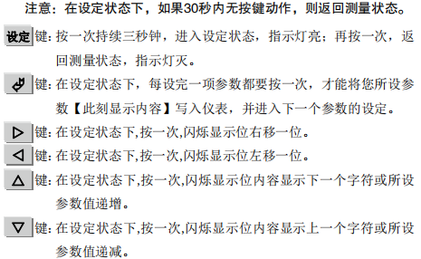 共有六個(gè)使用鍵,其中有測(cè)量狀態(tài)使用鍵和設(shè)定狀態(tài)使用鍵, 選用優(yōu)質(zhì)薄膜觸摸式鍵盤,按鍵時(shí)伴有清脆的蜂音。