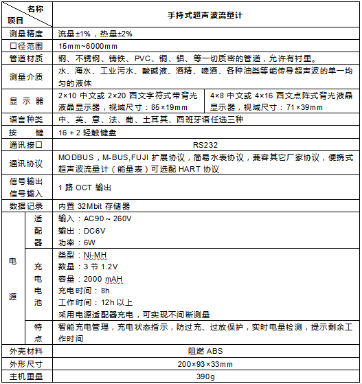 1、便攜式超聲波流量計用于測量各種能夠傳導超聲波的單一均勻的液體的流量及熱量。