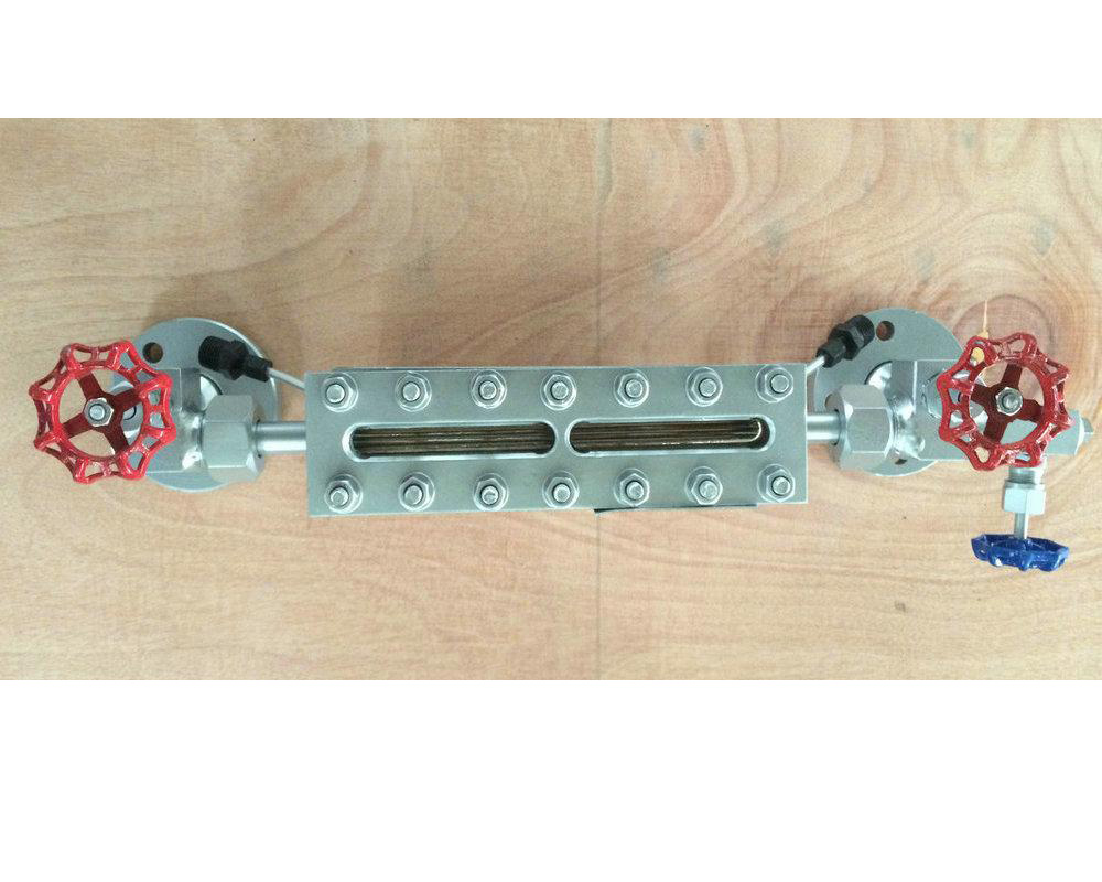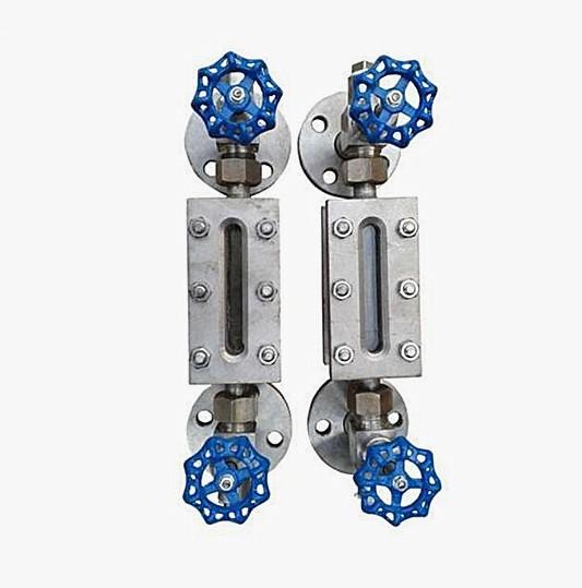 儀表的上下閥上裝有法蘭接頭,與容器連接構(gòu)聯(lián)通器,透過玻璃板直接指示容器,液位,“夾套型”設(shè)有加熱或冷卻裝置。該裝置加熱時可用蒸氣,冷卻時可用循環(huán)水,這樣可以調(diào)節(jié)流動性能,夾套型接管尺寸ZG1/4內(nèi)螺紋。