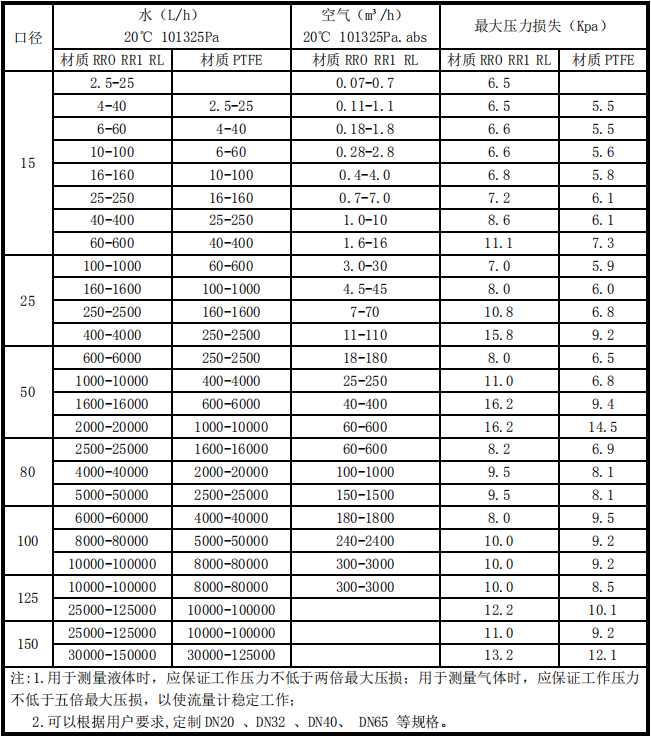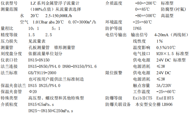 三、側(cè)進(jìn)測(cè)出型金屬管浮子流量計(jì)技術(shù)參數(shù)