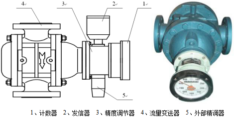 螺旋雙轉(zhuǎn)子流量計由流量變送器和計數(shù)器組成。變送器的主要部分是由裝有一對特殊齒形螺旋轉(zhuǎn)子的計量室和密封聯(lián)軸器組成。計數(shù)機構則包含減速機構、精度調(diào)節(jié)機構,計數(shù)器為字輪累積和電脈沖發(fā)信器等。