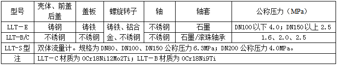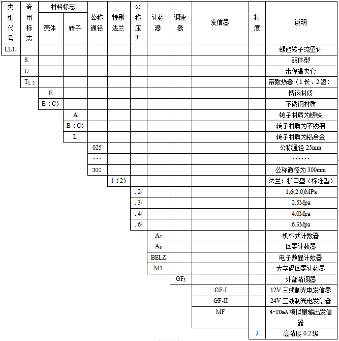 五、螺旋雙轉(zhuǎn)子流量計選型型譜
