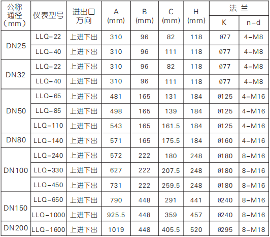 四、氣體羅茨流量計(jì)外形尺寸
