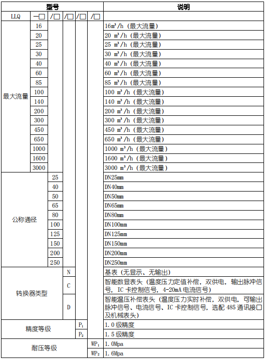 3、氣體腰輪流量計(jì)基本參數(shù)