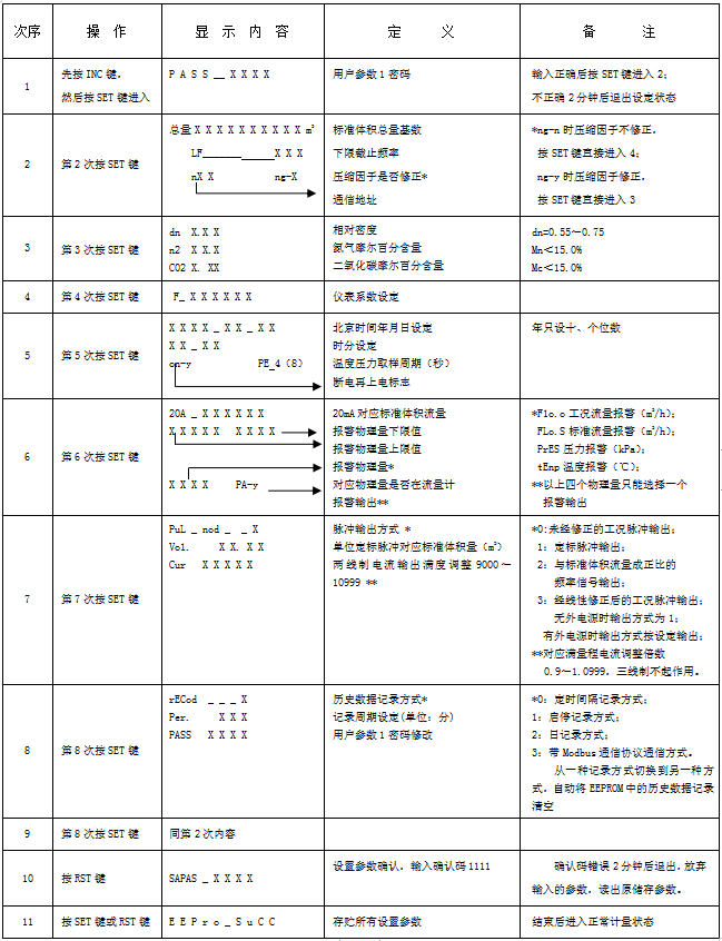 二、TDS旋進(jìn)流量計用戶參數(shù)的設(shè)定