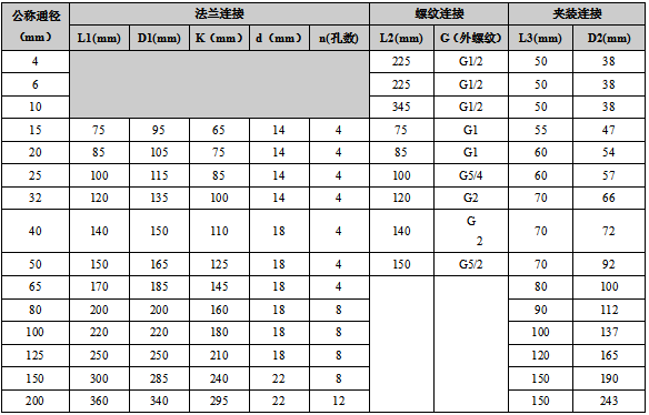 二、渦輪流量計(jì)尺寸參數(shù)