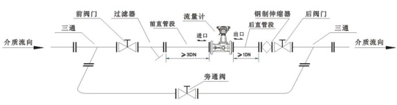 5、當被測氣體中含有雜質(zhì)時,應(yīng)在流量計前端安裝裝過濾器或過濾網(wǎng),但仍應(yīng)保證儀表前的直管段要求。
