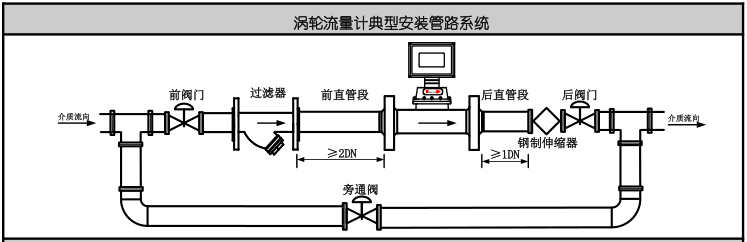 4、渦輪番量計受流場散布影響較大,因而對入口無整流器的流量計應(yīng)按請求對傳感器的上下游側(cè)設(shè)置直管段,對入口設(shè)計有整流器的流量計也應(yīng)按運用闡明的請求設(shè)置直管段長度。