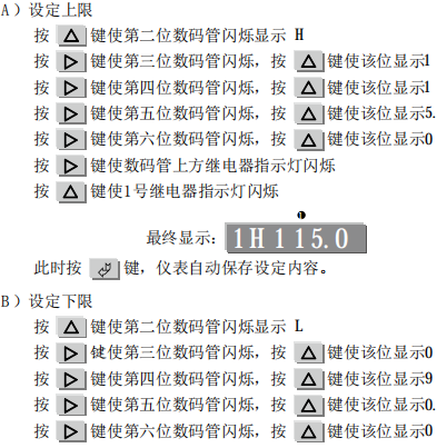 例四:**通道的量程范圍是4~20mA,顯現(xiàn)范圍是-100.0~100.0℃; 記載范圍是0.0~150.0℃。報警上限為115.0℃,1號繼電器輸出。下限為90.0℃,3號繼電器輸出。偏向上限為4.0℃,2號繼電器輸出。偏向下限為30.0℃,4號繼電器輸出。