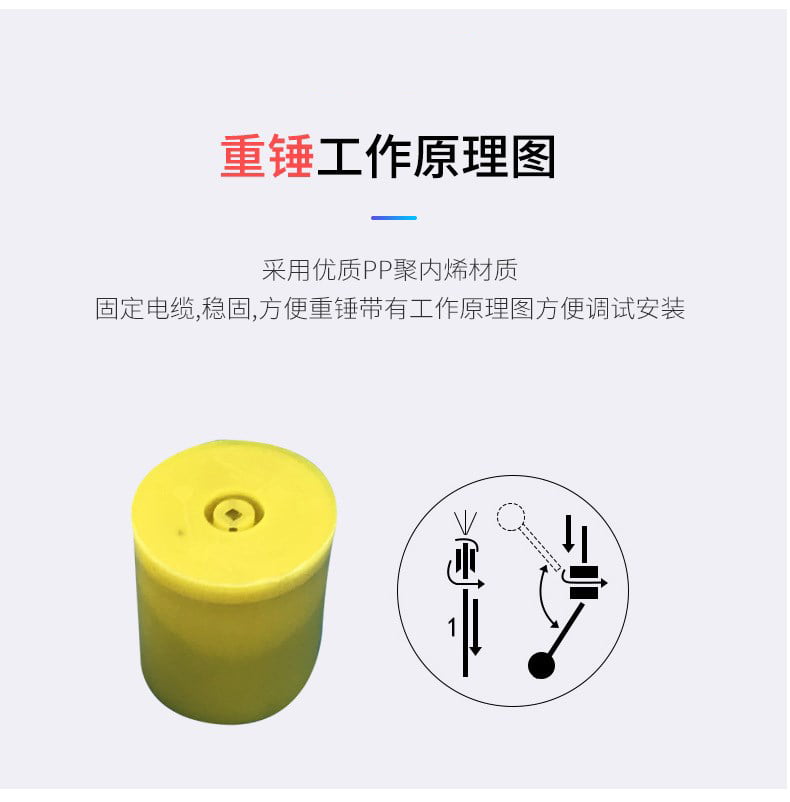 5、安裝簡捷,調試方便,上下移動定位重塊,即可隨意調節(jié)淮面控制范圍。