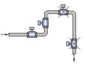 保證管路一直充溢液體至關(guān)重要,否則流量顯現(xiàn)會遭到影響,而且還會呈現(xiàn)丈量錯誤,管路構(gòu)造的設(shè)計必需要保證測流管一直充溢流體。當(dāng)流體有分流貨含有固體顆粒沉淀物時,倡議運用垂直裝置。但采用垂直裝置時,要遵照流體從下到上的走向,以保證管路充溢流體。