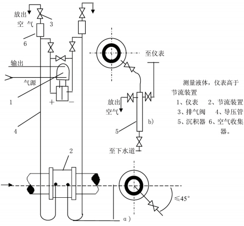 丈量蒸汽流量時,設(shè)備方法一般為差壓變送器低于、高于節(jié)省設(shè)備兩種。取壓口方位應附合上述設(shè)備要求,并在導壓控制高點處裝上放氣閥和氣體收集器。
