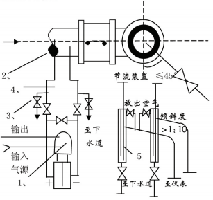 丈量介質(zhì)為清潔的氣體流量時,設(shè)備方法一般為差壓變送器高于、低于節(jié)省設(shè)備兩種取壓口方位應契合上述設(shè)備要求,當差壓變送器低于節(jié)省 設(shè)備時,導壓管有必要向下彎至差壓變送器,并在*低處設(shè)備放水閥和堆積器。