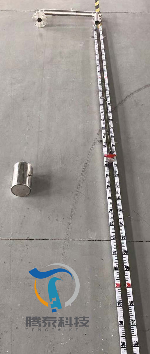 在儀表安裝時(shí),罐內(nèi)應(yīng)還未有被測介質(zhì),浮標(biāo)在罐內(nèi)的底部時(shí),重錘指針部分的紅色尖頭指示應(yīng)指在標(biāo)尺丈量范圍的頂部“零”值上,否則要調(diào)整鋼絲長度。
