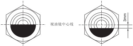 2、若油位低于視油鏡中心線3mm,闡明光滑油損耗,需補(bǔ)充至油視鏡中心線。注油口和視油鏡位置。
