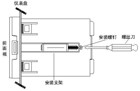 1、將儀表從安裝面板(請(qǐng)使用鋼板)前方推入安裝孔中。其中安裝面板厚度為(1.5~4.5)mm。