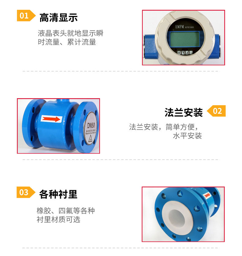c、為適應(yīng)不同介質(zhì)測量的要求,傳感器的襯里和電極材料可以有多種選擇。