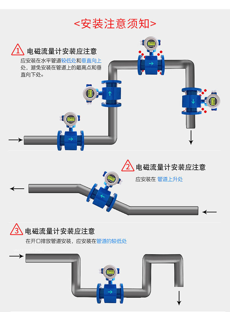 1、盡量避免鐵磁性物體及具體強(qiáng)電磁場的設(shè)備(如大電機(jī)、大變壓器的等),以免磁場影響傳感器的工作磁場和流量信息。